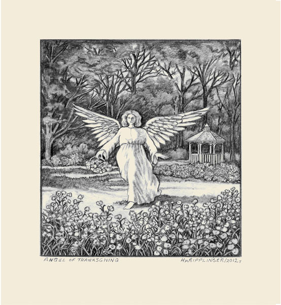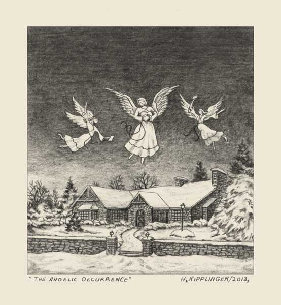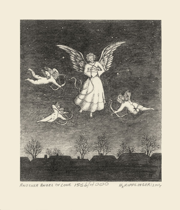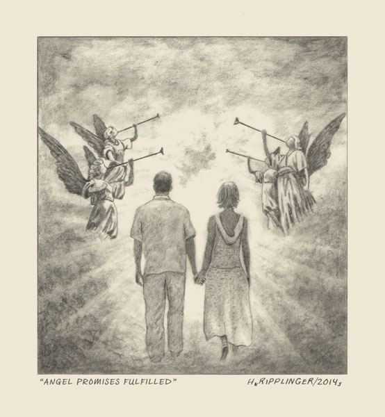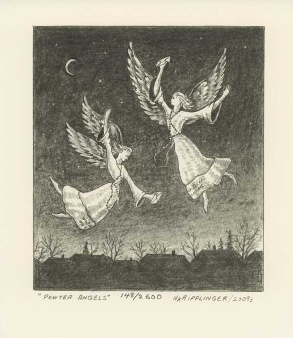 Title: “Pewter Angels” Frameable Numbered Print, sketch by artist Henry Ripplinger